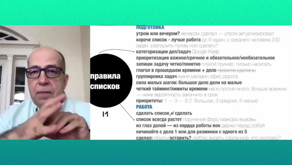 В плане должно быть то, что привязано ко времени, что обещал себе и другим. Все остальное – в списках. Задача – успеть сделать из списка как можно больше важных вещей.