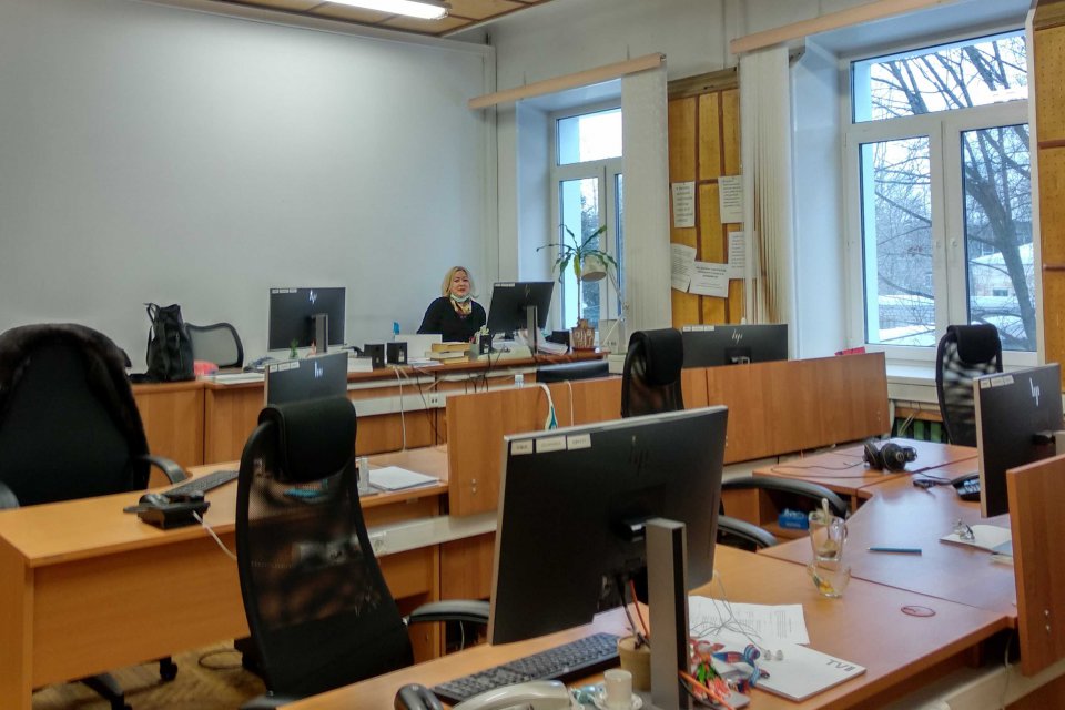 Кабинет, где работают корреспонденты. Зал пустой, потому что все получили задания согласно съемочному плану и разъехались. «Я подготовила соты, а они улетели за нектаром», – шутит Нина Васильевна Гуркина, заместитель начальника службы новостей. Она заверстала выпуск и ждет корреспондентов к определенному часу.