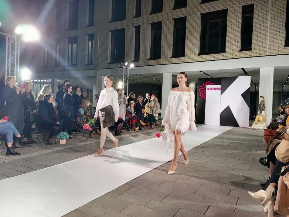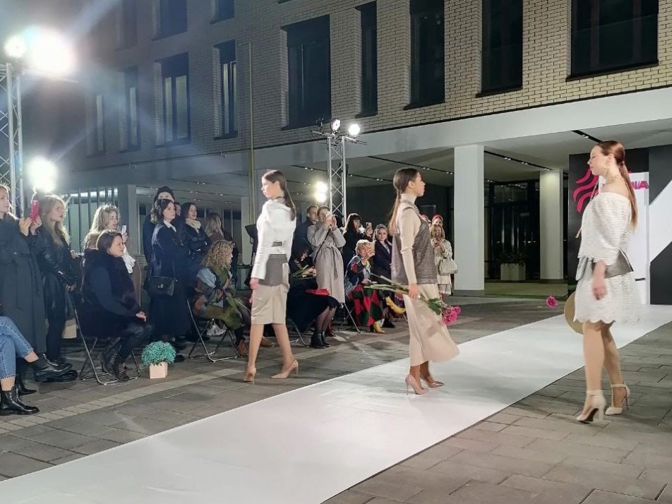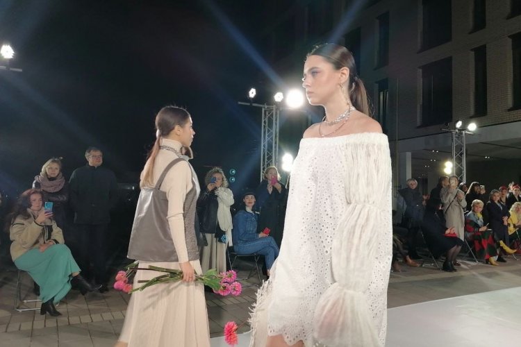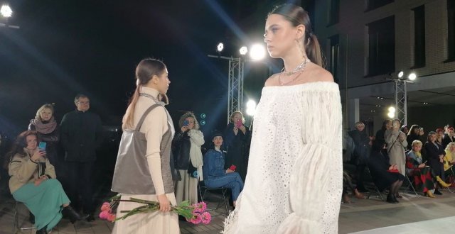 Заключительная и основная часть эксклюзивного светского мероприятия прошла на парковочной зоне клубного дома, именно здесь расположили «язык» для демонстрации нарядов бренда KUZINA. Приветствуя публику, хозяйка модного дома поблагодарила за поддержку клиентов, а также своих близких, без которых «ничего бы не получилось».