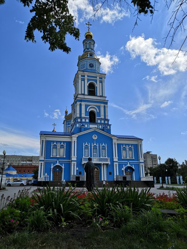Собор рассчитан на 2 тыс. прихожан. Его здание построено в стиле барокко и окрашено в ярко-голубой цвет. Собор поражает как внутренним убранством, так и внешней красотой золотых куполов.