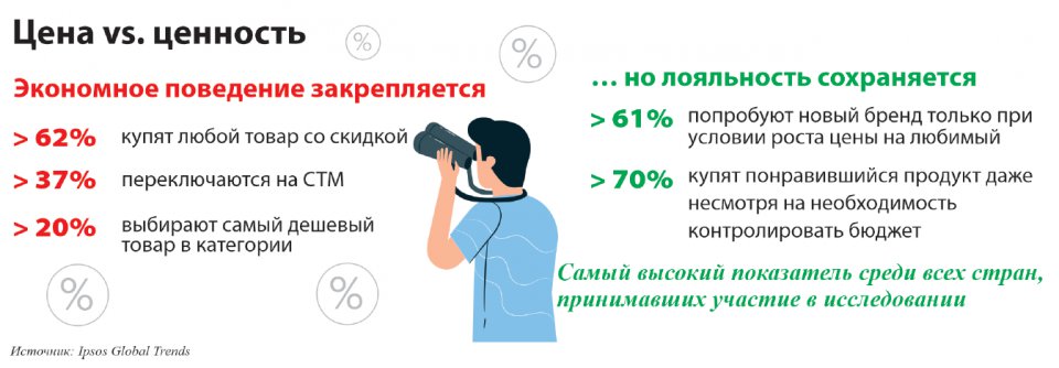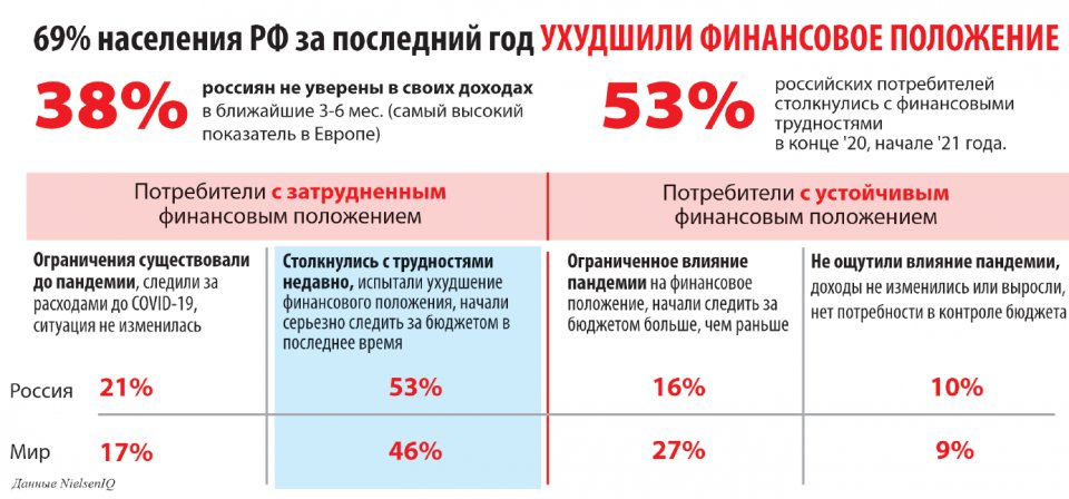 Константин Локтев, директор по работе с ритейлерами NielsenIQ в России: «Рынку FMCG удалось показать рост по итогам 2020 года: продажи товаров повседневного спроса выросли в России на 3% в денежном выражении. Однако с учетом низкой покупательской активности и переключения в режим экономии большой группы потребителей в 2021 году потребление в натуральном выражении продолжит стагнировать, а рост рынка в стоимостном выражении будет стимулировать только низкий уровень инфляции».