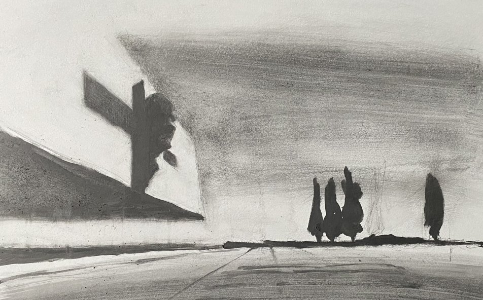 Некоторые работы сделаны в технике, в которой я рисую всегда: я отпускаю руку, и она создает ткань рисунка сама. Узнаете ли вы электростанцию Вольсова не так важно, главное, чтобы рисунок понравился внутренним трепетом. Думаю, он там есть, или, по крайней мере, мне хотелось бы, чтоб он там был.
