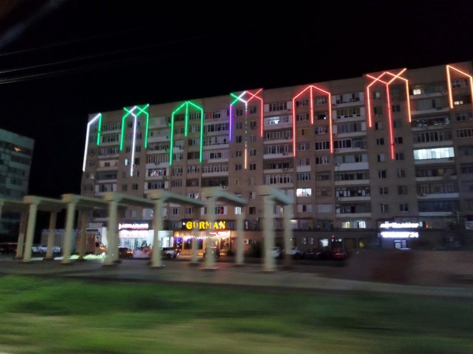 Ну и наконец вот он, Уральск. Яркий, сверкающий в темноте степей своими огнями. На несколько минут даже кажется, что попадаешь в эдакий местный филиал Лас-Вегаса. Неоновыми лампами украшены даже обычные советские «панельки». Связано это с расположением: когда вокруг на много километров – одни лишь степи, хочется максимально разнообразить окружение.