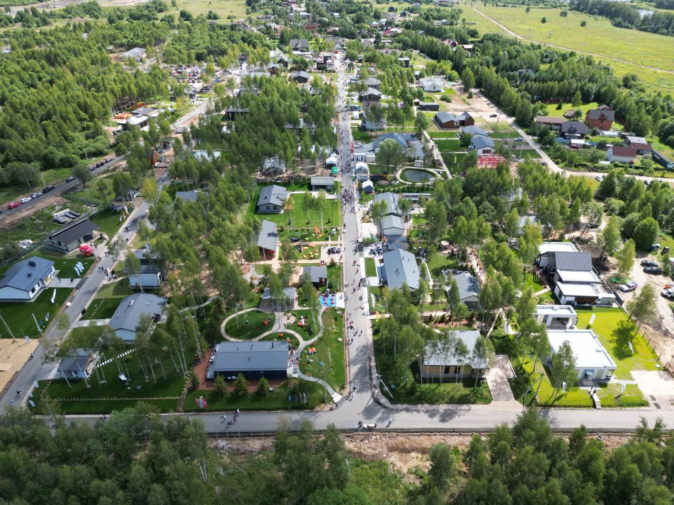 В части поселка реализуется концепция курортного проживания с арендными домами, развлечениями, обучением на улице мастеров, банными улицами и отдельно жилым кластером.