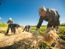 К сбору урожая привлекаем местных жителей, в том числе школьников, которых с близлежащих поселений забирает специальный автобус и развозит по домам по окончании рабочего дня.