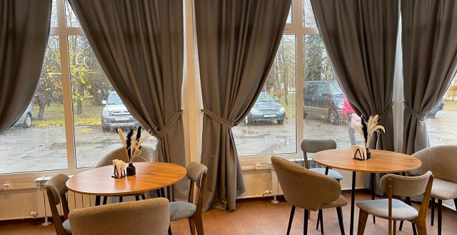 Я посетила это место в погожий осенний день, когда на улице было солнечно, но уже холодно. Здание у кофейни маленькое, зато практически весь зал окружен панорамными окнами. Это одновременно и плюс, потому что такой ход всегда добавляет много света и визуально расширяет пространство, и минус, ведь наш район не славится примечательными видами. Поэтому самыми привлекательными объектами в поле зрения у посетителей будут машины, стоящие на импровизированной парковке в паре метров от кофейни, из тех, что почище. Eще один плюс/минус: солнце сквозь огромные окна жарит, не щадя никого, да и климатические устройства отлично справляются со своей задачей. В итоге атмосфера внутри во время моего визита была поистине тропической. Поэтому, направляясь сюда, стоит предусмотреть, что, возможно, вам захочется снять с себя не только куртку.
