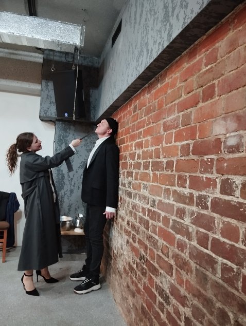 Актерский состав - Павел Солдатов и Юрий Черный, который еще не был задействован в наших проектах, он очень своеобразен в своем сценическом проживании. В общем, свежайший материал, чистой воды эксперимент, я, как продюсер, горжусь этим проектом.