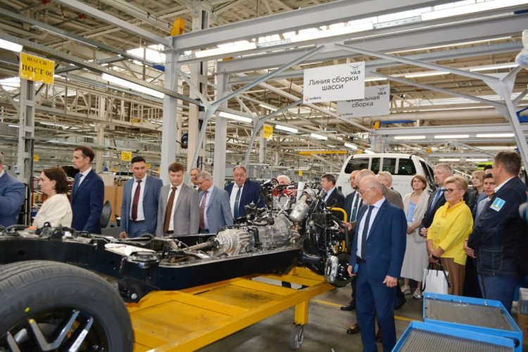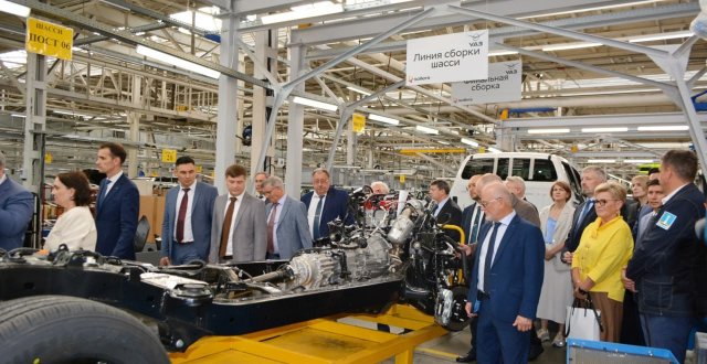 Сергей Катырин осмотрел главный конвейер УАЗа — завода, с которым Союз «Ульяновская ТПП» сотрудничает на протяжении многих лет. Региональная палата проводит сертификацию продукции, что позволяет включать автомобили УАЗ в Реестр российских производителей промышленной продукции Минпромторга РФ.