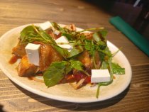Ну, и, конечно, не могла пройти мимо модного нынче салата с хрустящими баклажанами с пикантной заправкой. В целом неплох, но корочка у баклажанов могла бы быть и похрустящей. Впрочем, как отметил Александр Карагодин, официальное открытие «Фонотеки» планируется на середину августа, так что еще есть время «обкатать» меню, усовершенствовать некоторые позиции, в том числе, с помощью обратной связи от гостей. Что будет точно в здешнем ресторане, так это дневная посадка и меню с демократичными ценами в формате бизнес-ланча.