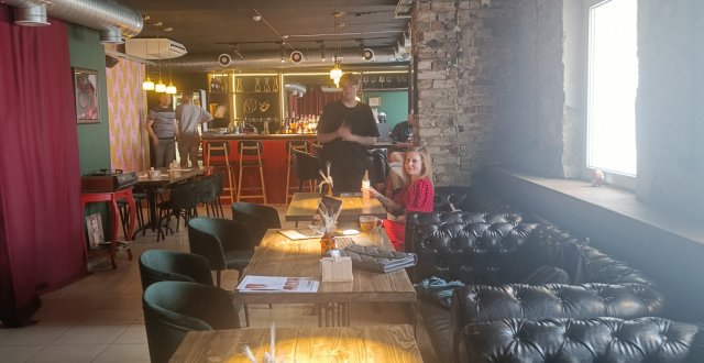Заходишь в «Фонотеку» и попадаешь в храм винила. Пластинки здесь – не просто декор, а душа места. Они везде, даже на стене в туалетной комнате, а около барной стойки есть небольшая витрина с грампластинками, которые можно купить. Оказывается, в этом старинном здании, где бережно сохранили кирпичную кладку, в советское время располагался магазин «Мелодия» (намоленное место!).