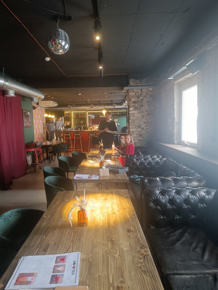 А еще концепция «слушательного» бара предполагает теплое общение. В «Фонотеке» нет официантов, - но здесь бармен легко выходит из-за стойки, чтобы подойти к гостям - обсудить меню, да просто поболтать в дружеской атмосфере.