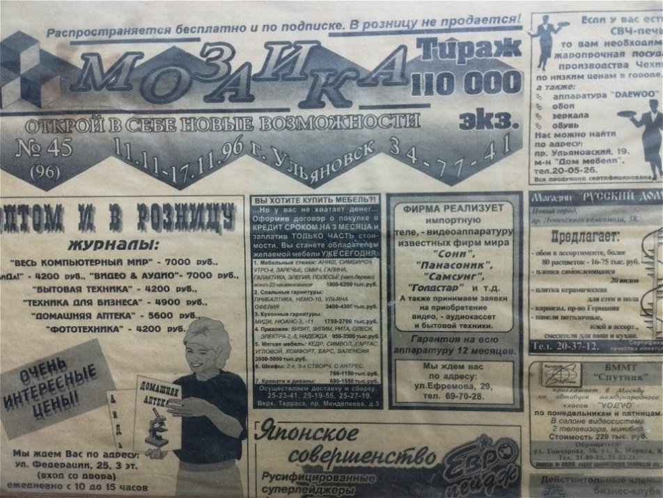 Юбилейный, 4000-й номер газеты «Мозаика» вышел в Ульяновске