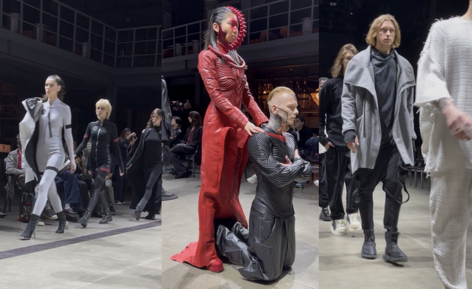 Когда улетели пришельцы, на подиум пришли образы в стиле команды «Стартрек», космические исследователи и странники миров от брендов ANGULO и FABRIC. На этом сюрпризы не заканчивались, коллекция от VARNAK в стиле Вселенной Marvel напоминала образы «Тора» и «Стражей Галактики», особо отмечу их высокую работу с кожей и внимание к деталям.