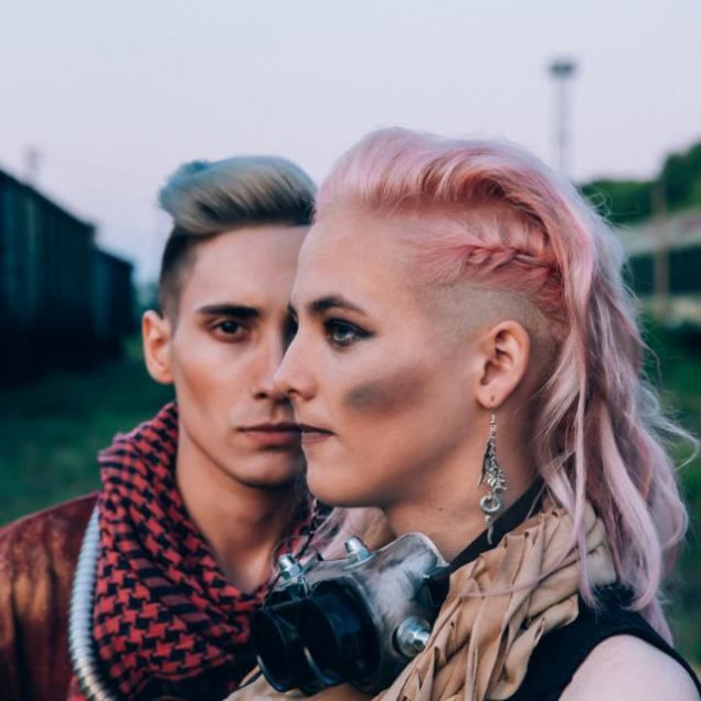 - Я сделала парню и девушке окрашивание, стрижку, макияж в таком… «апокалиптическом» стиле. Образ моделей получился очень ярким.