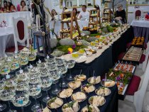 Глядя на ломящиеся от калорийных блюд столы понимаешь, что зожникам тут не место. Хотя скажем, тыквенный суп, овощной чизкейк, салат с рукколой и креветками и прочие полезные блюда, которые приготовила Мария Искандерова, порадовали бы любого приверженца здорового образа жизни