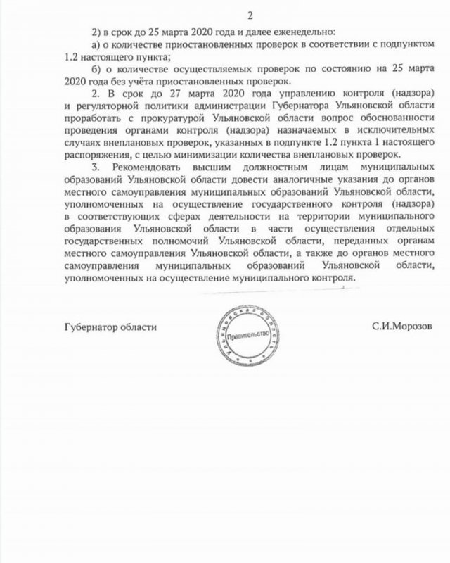 «Только что Губернатор Сергей Морозов подписал распоряжение о прекращении проверочных мероприятий в отношении предпринимателей. Каждый предприниматель сегодня должен сосредоточится на антикризисном менеджменте и сохранении своих коллективов», – прокомментировал глава Корпорации развития промышленности и предпринимательства Руслан Гайнетдинов.