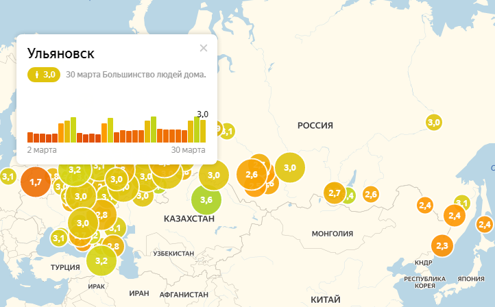 «Яндекс» подсчитал, как вырос уровень самоизоляции ульяновцев