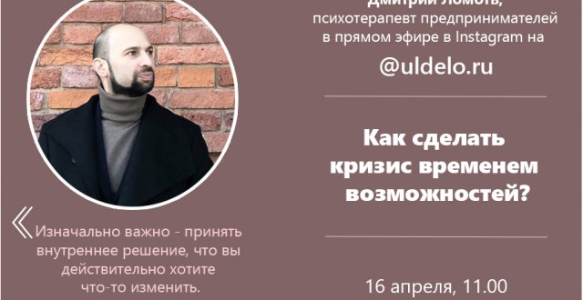 В прямом эфире в нашем аккаунте в Instagram Дмитрий расскажет о том, как заработать и обогнать конкурентов во время коронавирусной турбулентности и как сделать этот специфический кризис временем возможностей. Задать спикеру вопросы можно в комментариях.