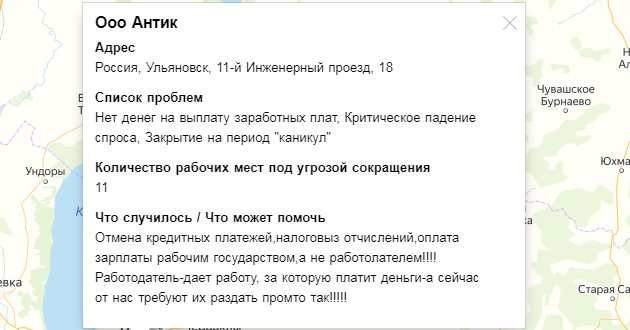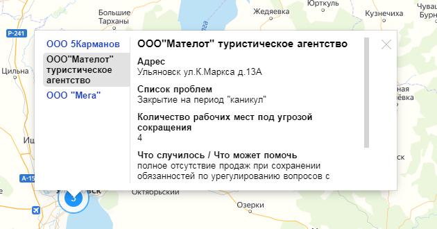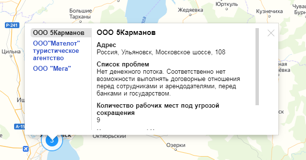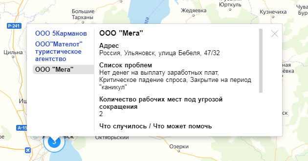 Интерактивная карта каждый день пополняется новыми историями компаний – их падения и закрытия из-за пандемии коронавируса. Сейчас здесь более тысячи историй, четыре из которых принадлежат компаниям Ульяновской области.