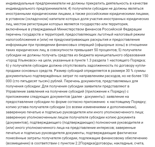 Получить субсидии могут действующие юридические лица и индивидуальные предприниматели, не имеющие долгов по налогам и пользованию помещением, не находящиеся в процессе реорганизации, ликвидации или банкротства, не являющиеся иностранными юрлицами или компаниями с иностранным участием более 50%.