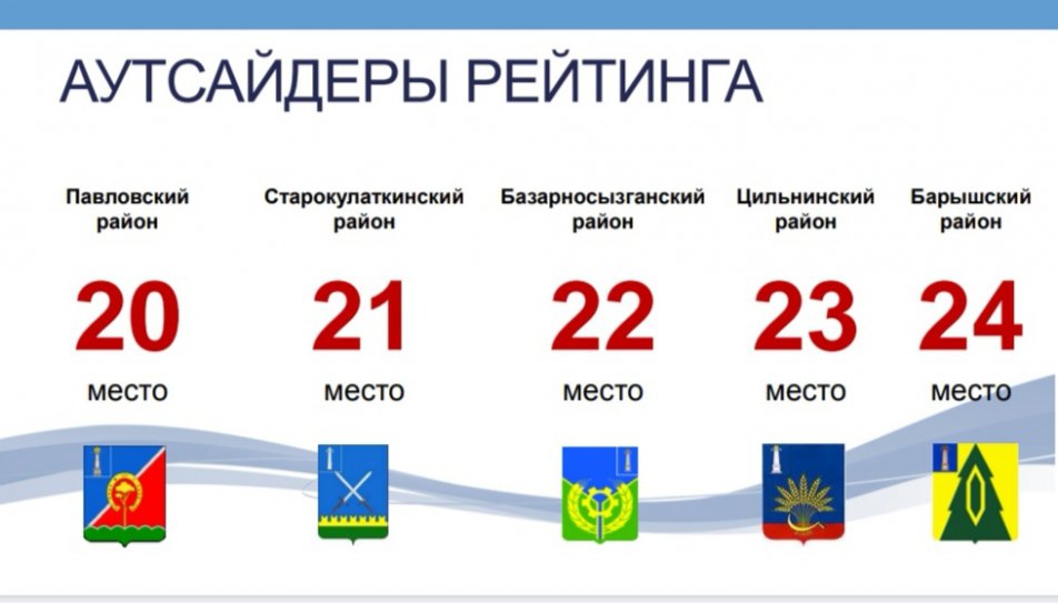 В число аутсайдеров также попали Цильнинский, Базарносызганский, Старокулаткинский и Павловский районы.
