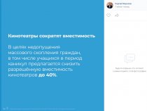 Кинотеатрам во время школьных каникул, которые продлятся с 5 до 18 октября, рекомендовано снизить разрешенную вместимость залов до 40%.