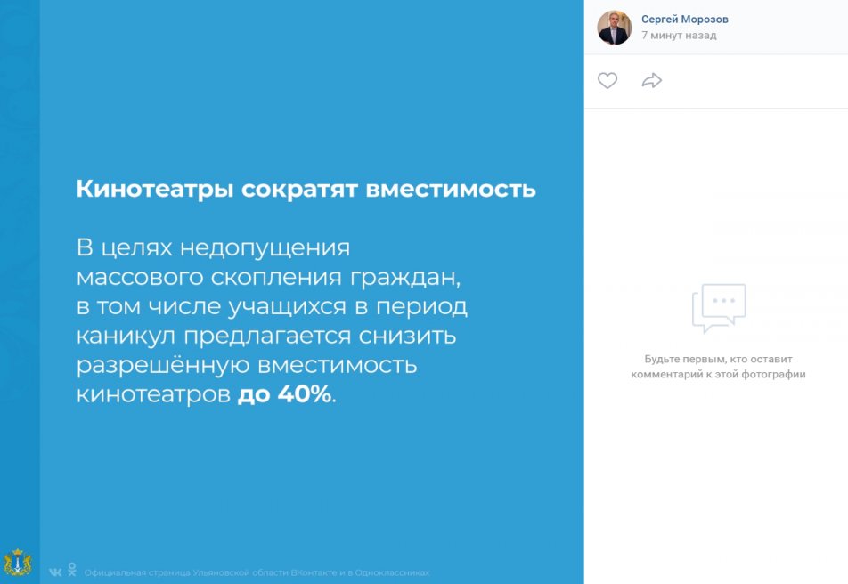 Ранее губернатор Ульяновской области Сергей Морозов заявил, что ограничения для отраслей экономики вводиться не будут.