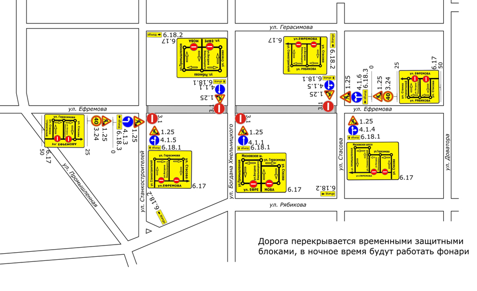 Кроме того, с 8 июня по 15 сентября в Ульяновске перекрыто движение на улице Ефремова: филиал ПАО «Т Плюс» проведет техническое перевооружение более 1700 метров тепломагистрали на улице Ефремова – на участке между улицами Доватора и Промышленной.