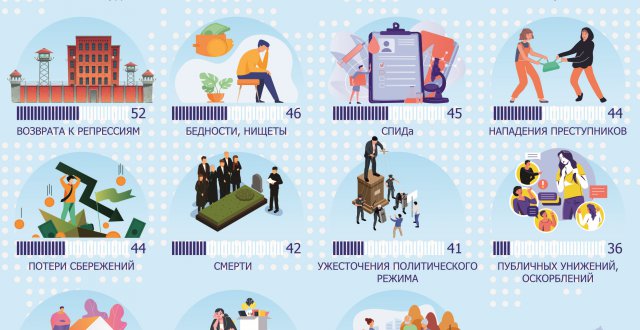 Исследование «Левада-Центр» показало, что выше всего уровень тревожности у женщин (особенно в возрасте 40-55 лет), у людей со средним или низким образованием, с невысокой профессиональной квалификацией, у бедных, жителей малых городов и сел. Также тревожность выше у респондентов, ограничивающихся федеральными каналами ТВ или медиа, входящими в прокремлевские холдинги (радио, газет, журналов).