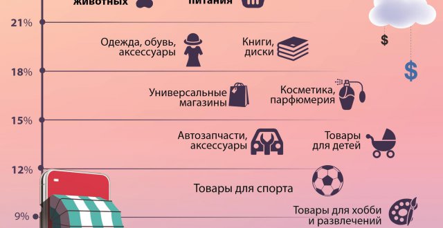 По данным АРБ Про, в e-commerce самая высокая конверсия (отношение количества заказов к количеству посетителей сайта) сегодня у аптек (24%), а также магазинов, продающих продукты питания и товары для животных (21%). У площадок, реализующих товары для дома и строительства, конверсия нулевая.