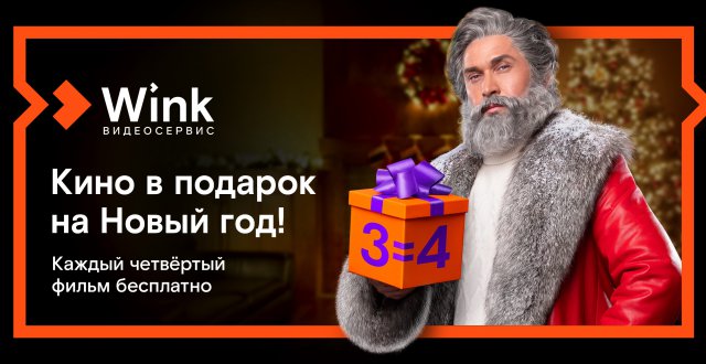 В поддержку акции «Кино в подарок на Новый год!» Wink запустил рекламную кампанию, в центре которой оказались уже известные зрителям герои — молодая пара влюбленных в кино и, конечно, главный новогодний персонаж. Уютно расположившись перед экраном, под мерцание новогодней елки пара смотрит один за другим три фильма и уже готова купить четвертый, но вдруг появляется уже довольно замерзший в ожидании этого момента Дед Мороз, чтобы вручить киноподарок мечты.
