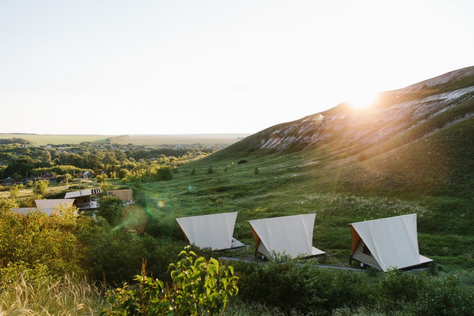 Глэмпинг – это новый вид экотуризма, качественный, комфортный и достаточно доступный способ отдохнуть на природе, в тишине и покое, у подножия Тушнинских меловых холмов, входящих в национальный парк «Сенгилеевские горы». Здесь туристам предлагают проживание в палатках и домиках, в комфортных условиях с необходимыми удобствами.