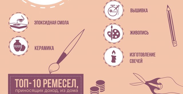 По данным worldscholarshipforum.com и academycrafts.ru, популярные тренды в мире ручного творчества – это эпоксидная смола, керамика, объемное шитье, полимерная глина, вышивка, живопись и изготовление свечей. Также эксперты назвали топ-10 ремесел, приносящих доход из дома. В их числе фоторамка, шарфы, ароматные свечи, игрушки, сахарный скраб и др.
