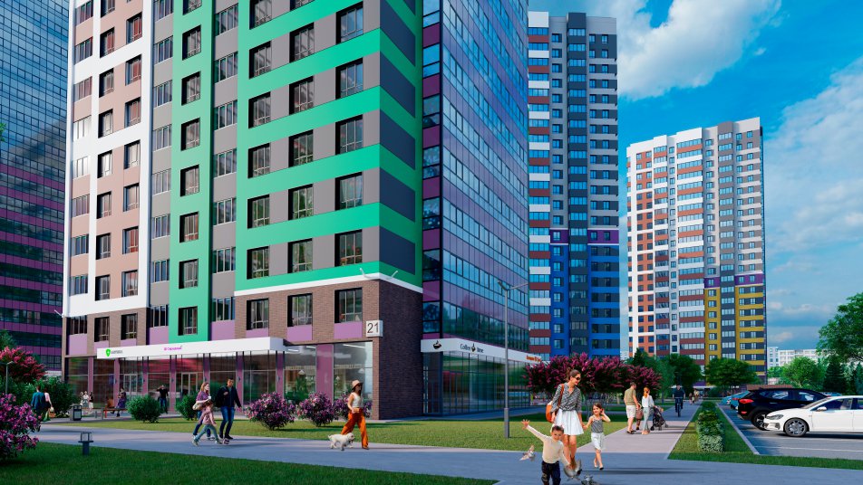 На первых этажах новых домов предусмотрены коммерческие помещения, отличное место для уютных кофеен, небольших магазинчиков, салонов красоты, детских центров развития и многого другого для удобства жильцов. Все нужное - буквально в «двух шагах»!