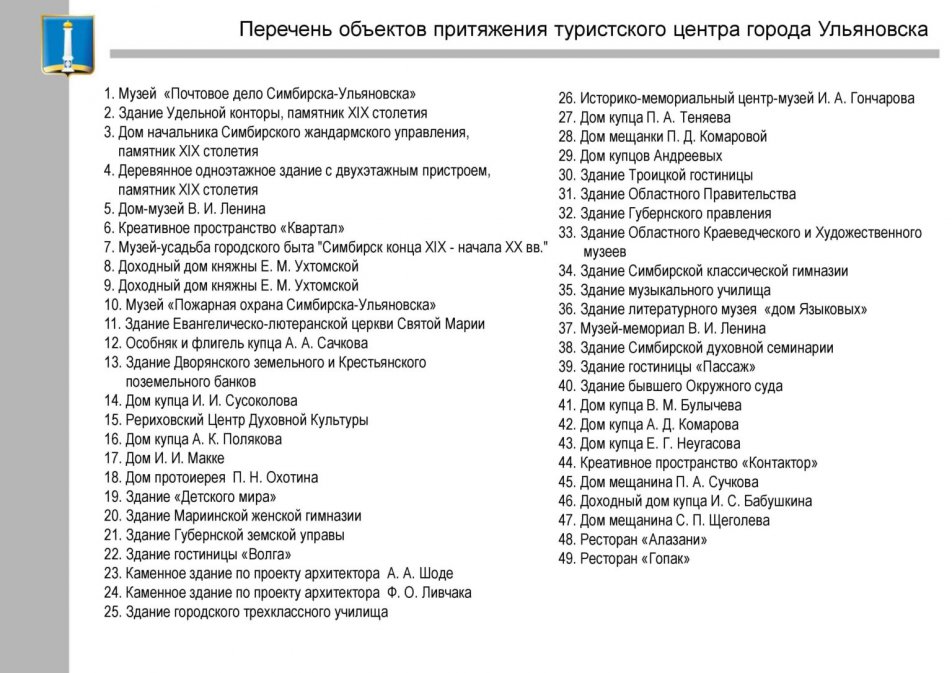 Напомним, что в границы исторического центра города входят такие популярные среди туристов и горожан объекты, как музей-заповедник «Родина В.И. Ленина», музейный комплекс «Ленинский мемориал», историко-мемориальный центр-музей И.А. Гончарова, «Ярмарочный квартал», музей балалайки, художественный музей, его филиалы и другие учреждения культуры, а также креативное пространство «Квартал» и создающееся пространство «Контактор».