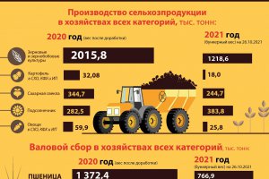 Общая посевная площадь во всех категориях хозяйств в этом году предварительно составит 1 миллион 87 тысяч гектаров, что на 15 тысяч гектаров больше прошлого года. На новой земле будет выращиваться урожай картофеля, сахарной свеклы и других овощей.