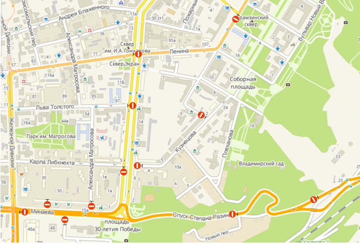 По сообщению городской администрации, 1 мая в связи с празднованием Дня весны и труда с 08:00 до 12:00 будет запрещён проезд транспортных средств по следующим участкам улично-дорожной сети: