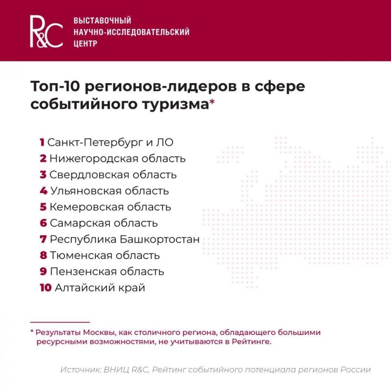 Ульяновская область заняла 4 место в рейтинге регионов-лидеров в сфере событийного туризма. Нас опередили только Санкт-Петербург, Нижегородская и Свердловская области. Отметим, что Москва, как столичный регион, обладающий большими ресурсными возможностями, здесь не учитывалась.
