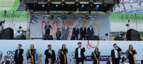 Со сцены к собравшимся также обратились президент Российского студенческого спортивного союза Сергей Сейранов и заслуженный мастер спорта Советского Союза, депутат Государственной думы Российской Федерации Владислав Третьяк.