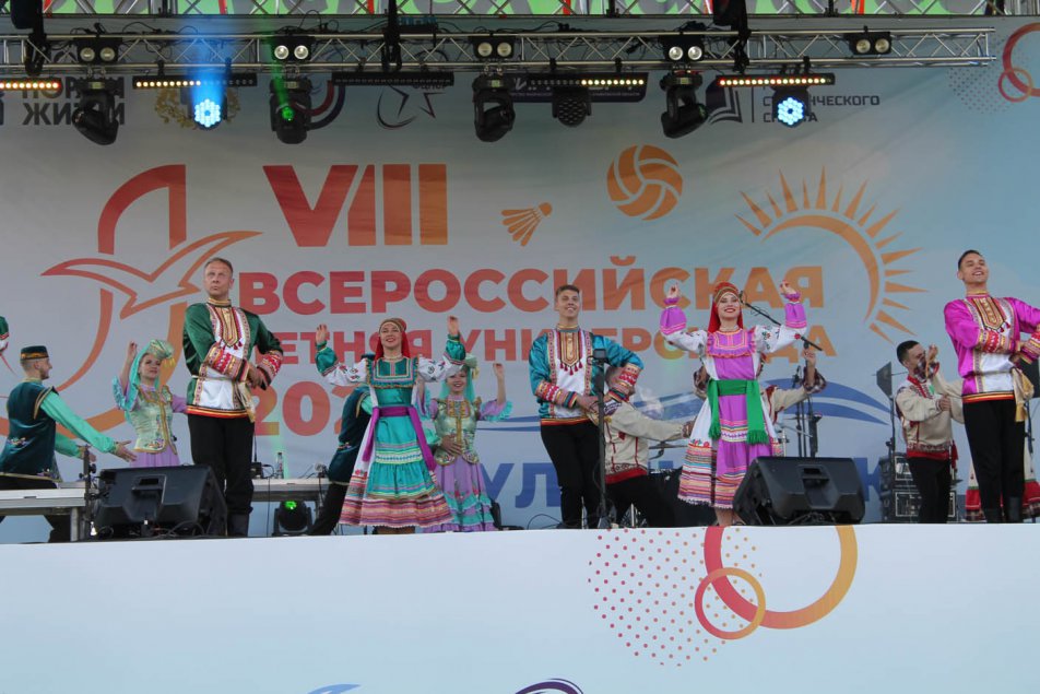 Церемония открытия универсиады была поделена на несколько блоков. Так, для гостей праздника была организована работа интерактивных площадок: ВФСК «Готов к труду и обороне», Олимпийский совет Ульяновской области и Конфедерации единоборств с показательными выступлениями спортсменов, презентационные площадки Школы единоборств MALKHASYAN TEAM, фитнес-клуба Cube и «Мир спорта».