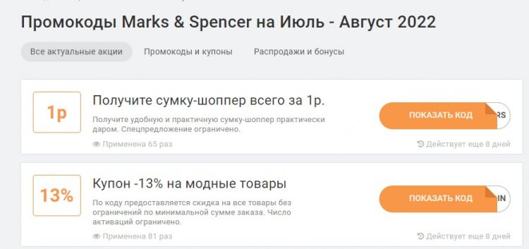 Например. Вы можете зайти на сайт Бонкод и выбрать там нужный магазин. Это может быть как интернет-магазин сумок, модных товаров, одежды для детей и взрослых, нижнее белье, офисную одежду и многое другое. Вам нужно только зайти на этот сайт, открыть промокод, скопировать его, перейти на сайт магазина, положить товары в корзину и при оформлении ввести промокод в нужное поле. Все, ваша скидка активирована, вы совершили покупку со значительной экономией.