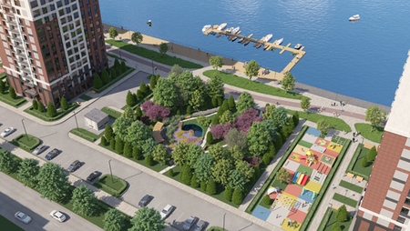 Параллельно со строительством набережной DARS начинает возведение жилого микрорайона «Аквамарин-2». На берегу Свияги будут возведены пять 24-этажных жилых домов общей площадью около 60 тыс. кв.м.
