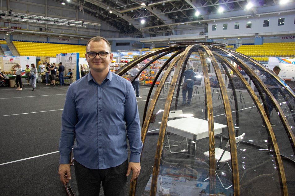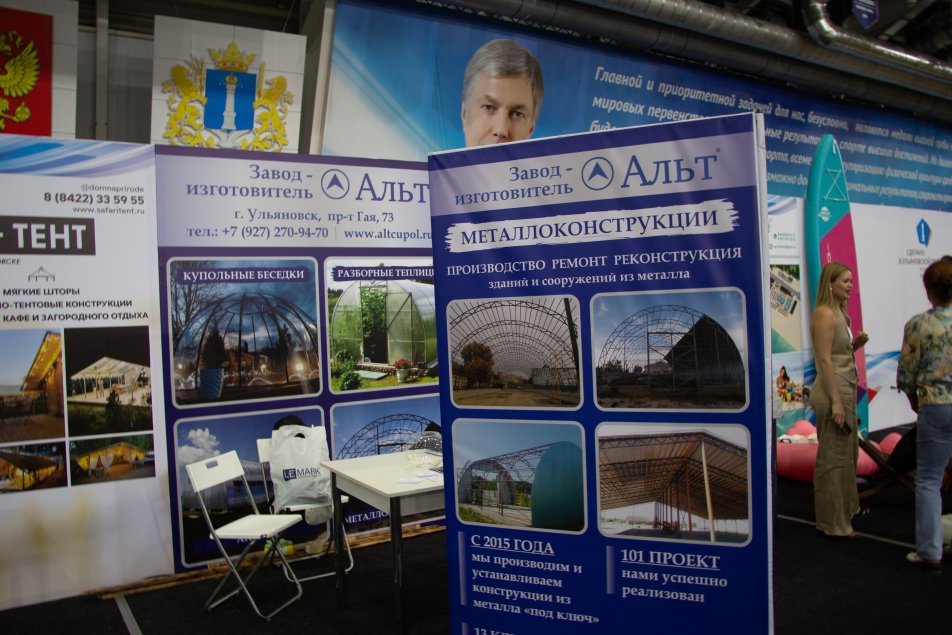 На выставку мы пришли с нашим новым продуктом – купольной беседкой, которая подойдет для ресторанов, баз отдыха, а также для дачных и загородных участков, если, например, владельцам требуется отделить и закрыть часть территории под место для отдыха, барбекю-зону и даже бассейн. Каркас сделан из профильной трубы, покрыт монолитным поликарбонатом, а покраска осуществлена порошковым способом. Конструкция проста для самостоятельной сборки-разборки, но мы также готовы оказать услуги по установке этих беседок, по Ульяновской области мы с радостью доставим беседку бесплатно.