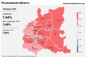 Годовая инфляция в регионе в феврале 2024 года составила 7,04% после 7,00% в январе. Инфляцию во многом сдерживало расширение предложения некоторых продуктов питания. В то же время противоположное влияние на нее оказал эффект низкой базы прошлого года в ценах на некоторые непродовольственные товары. Инфляция в регионе сложилась ниже, чем в Приволжском федеральном округе (7,54%) и в России в целом (7,69%).