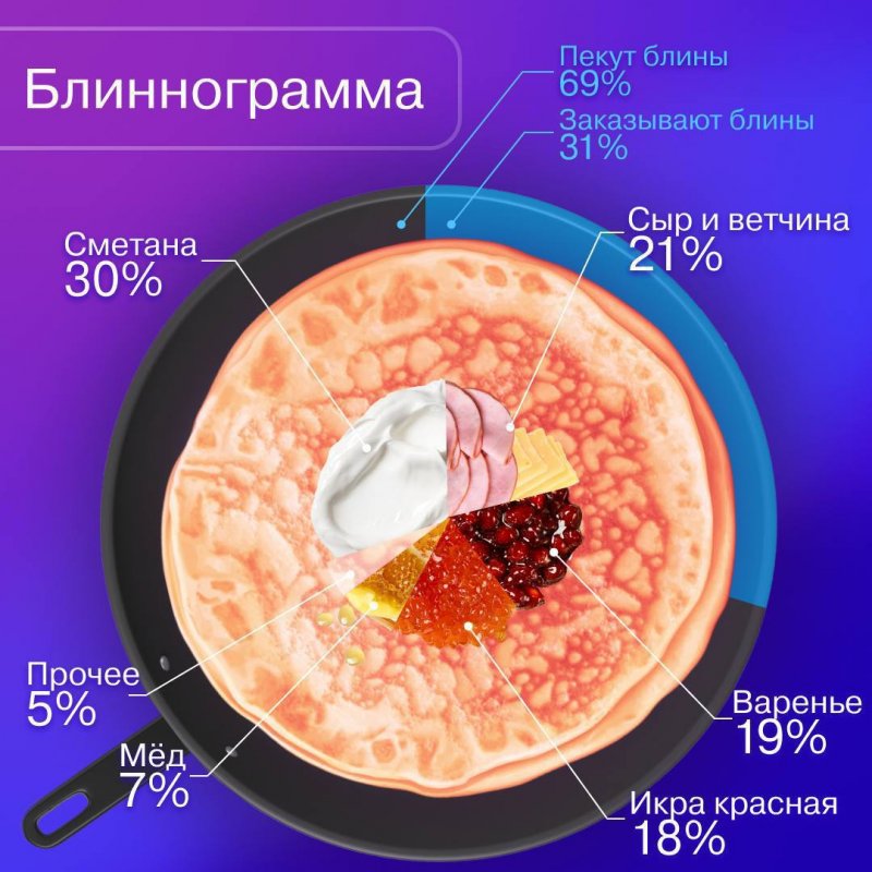 Почта Банк провел опрос среди клиентов и выяснил, что 32% россиян готовы потратить на блины в масленичную неделю до тысячи рублей. Еще 27% намерены выделить на эти цели до 500 рублей, а 24% - до 300 рублей. Большинство опрошенных, 69%, не планируют покупать блины в кафе и ресторанах, а предпочитают готовить сами. А 4% россиян рассказали, что купят уже готовые. В топ-5 предпочтений по начинкам названы - сметана, сыр и ветчина, варенье, красная икра, а также мед. А вот блины с красной рыбой, как выяснилось, у соотечественников не в чести.