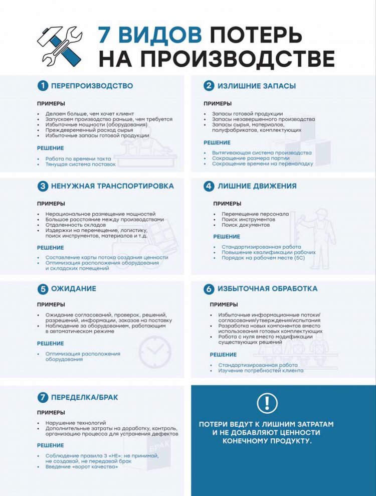 Для повышения эффективности и снижения издержек на производстве необходимо системно выявлять и устранять основные виды потерь. Согласно принципам бережливого производства, все непроизводительные затраты можно классифицировать на семь ключевых категорий, которые не добавляют ценности конечному продукту, но существенно влияют на себестоимость и сроки.