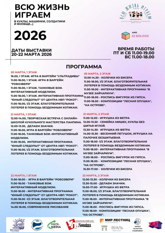 Берите детей, родителей, бабушек и дедушек. Приходите всей семьей играть в куклы, машинки и солдатики. По-настоящему!